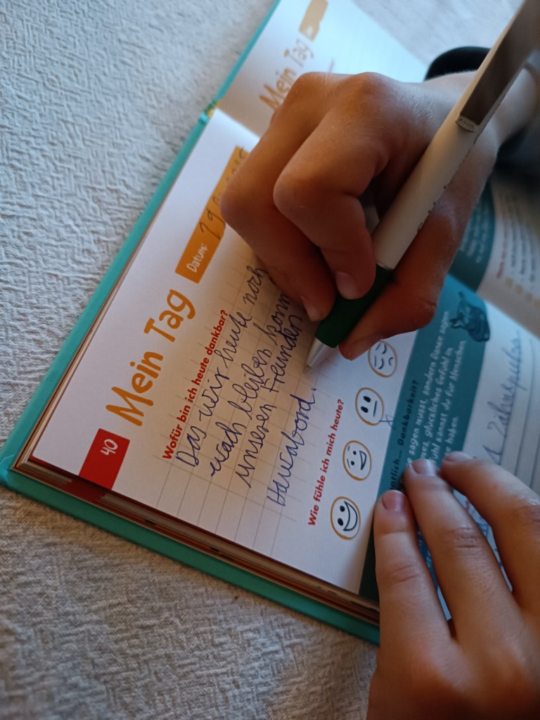 - Hier geht es zum „6-Minuten Tagebuch für Kinder“ – spielerischer Weg, den emotionalen Alltag zu erforschen – für Kinder von 6-12 Jahren