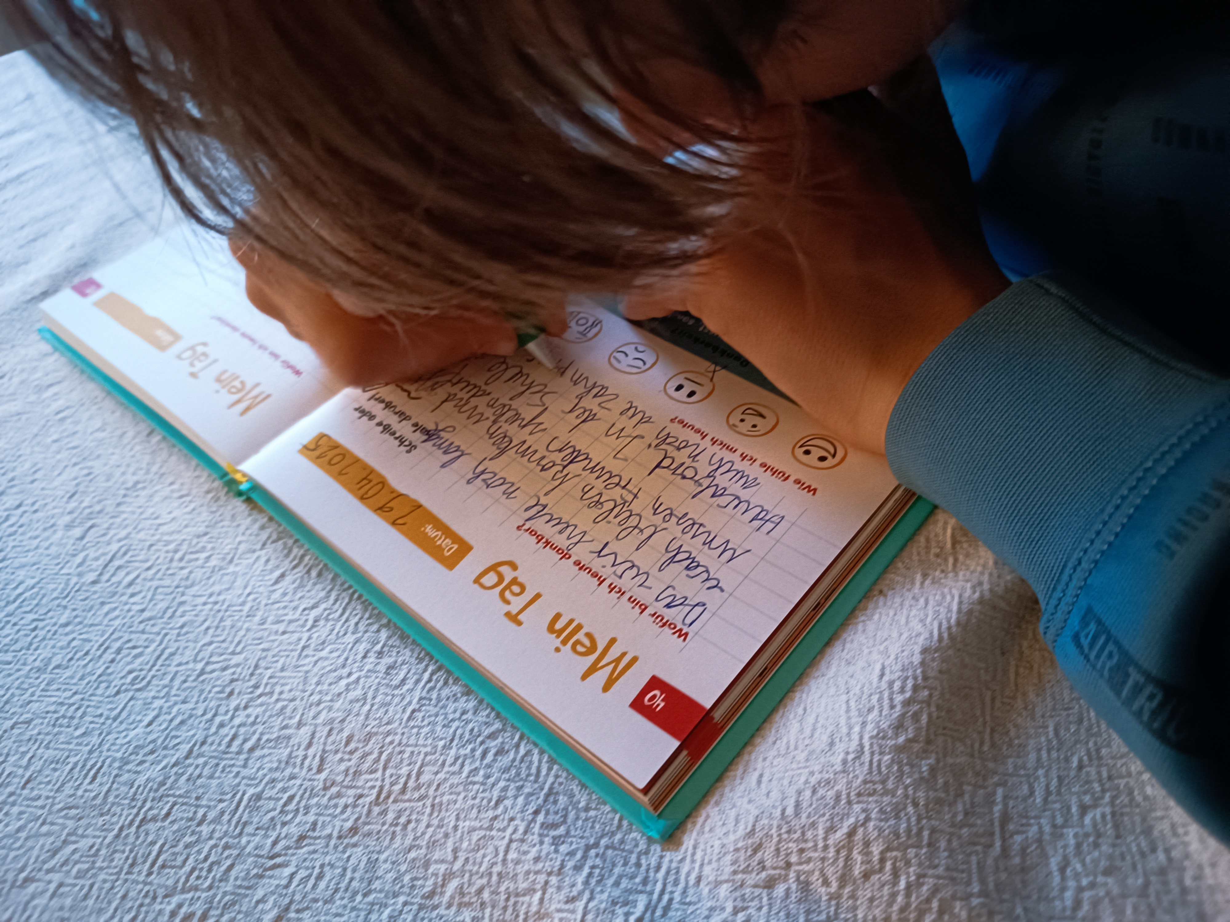 Da ich meinen Kindern gern auch das Thema Tagebuchschreiben mit auf den Weg geben möchte, habe ich zwei Bücher bestellt (das 6-Minuten Tagebuch – Bundle). Ich wollte das Produkt kennenlernen und meine Kinder zum Schreiben ermutigen, das sie jetzt so weit sind, dass sie lesen und schreiben können. Sie sollen auch das Gefühl kennenlernen ein eigenes Tagebuch zu führen. Und vielleicht überdauert dann dieses Buch die Zeit und sie haben später einen temporären Schatz voller Erinnerungen an ihre Kindheit.