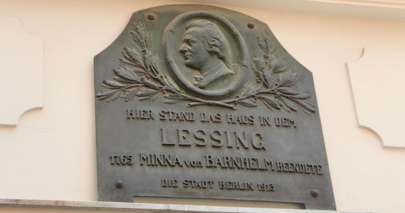 Tafelinschrift: Hier stand das Haus in dem LESSING 1765 MINNA von BARNHELM beendete – Die Stadt Berlin 1913